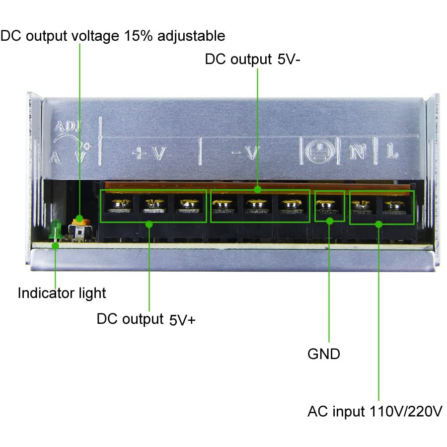 5V Metal Case Power Supply (60A) with Fan