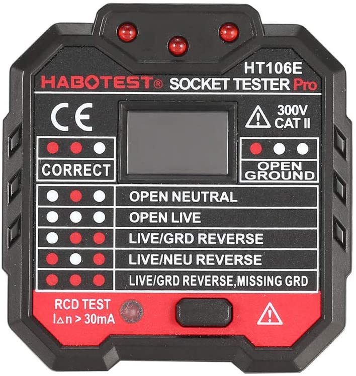 HABOTEST HT106E Socket Testers Voltage Test Socket Detector Ground Zero Line Plug Polarity Phase Check