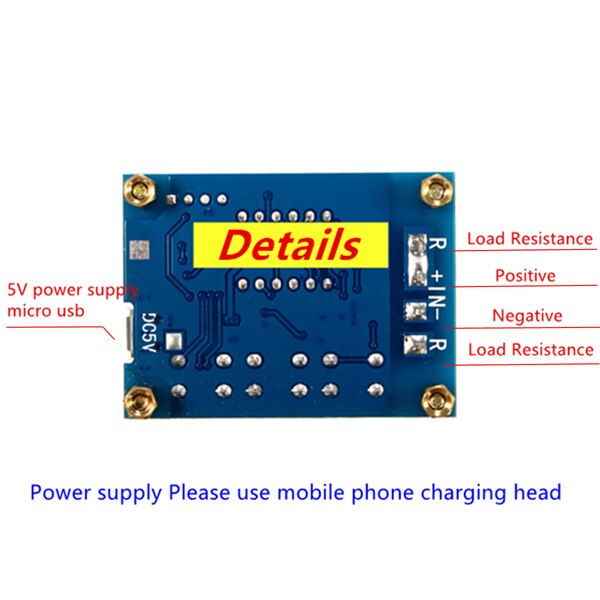 2. Connect the positive pole of the battery under test to the positive input, the negative pole to the input negative pole, and the reverse polarity (the reverse connection with the load may damage the circuit)! Connect the load to the output positive and output negative, and give the tester micro USB working power (not available for desktop or notebook USB), and the battery voltage is displayed.